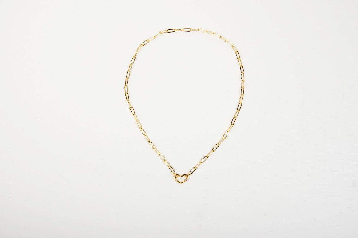 La Cadena Roma es una cadena de plata bañado en oro de 18k. Su cierre es un corazón dorado que agrega un toque de romanticismo y elegancia. Ideal para llevar como parte de un look casual o sofisticado.