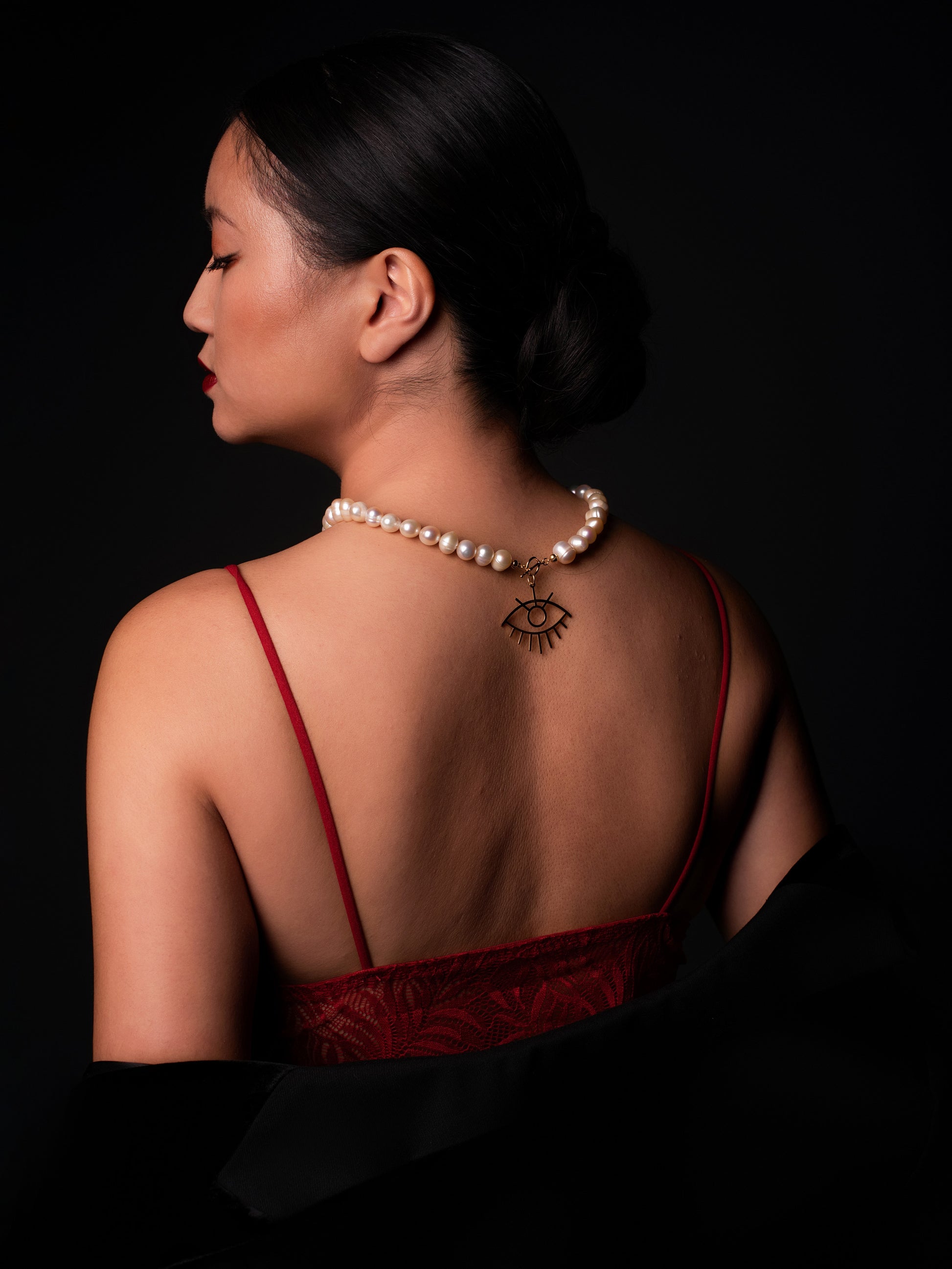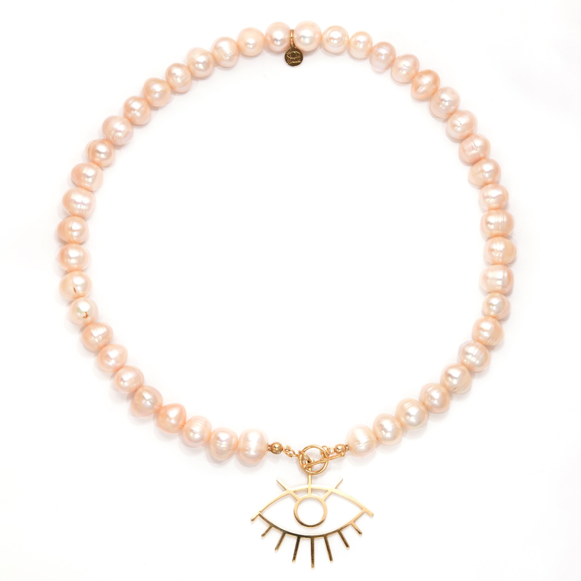 Cuando la elegancia y la pureza se unen se crea magia y piezas que brillan por sí solas. Este collar hecho de perlas singulares e imperfectas hacen de la imperfección un collar perfecto para cada ocasión. Con su charm de ojo de plata de 925 bañado en oro de 18k hará que todas las miradas sean para tí.