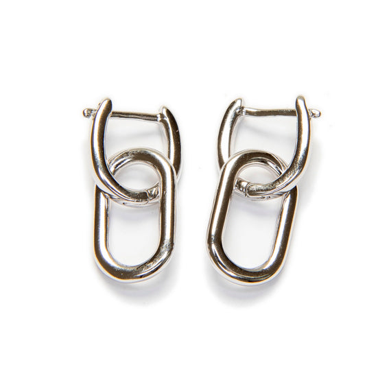 Estos pendientes de aro con diseño de eslabones dobles son una declaración de estilo moderno y audaz. Fabricados en plata de ley rodiada, presentan un acabado pulido que les confiere un brillo excepcional y una apariencia sofisticada. Los eslabones entrelazados aportan un toque de dinamismo y movimiento, convirtiéndolos en el accesorio perfecto para realzar cualquier atuendo, ya sea casual o formal.