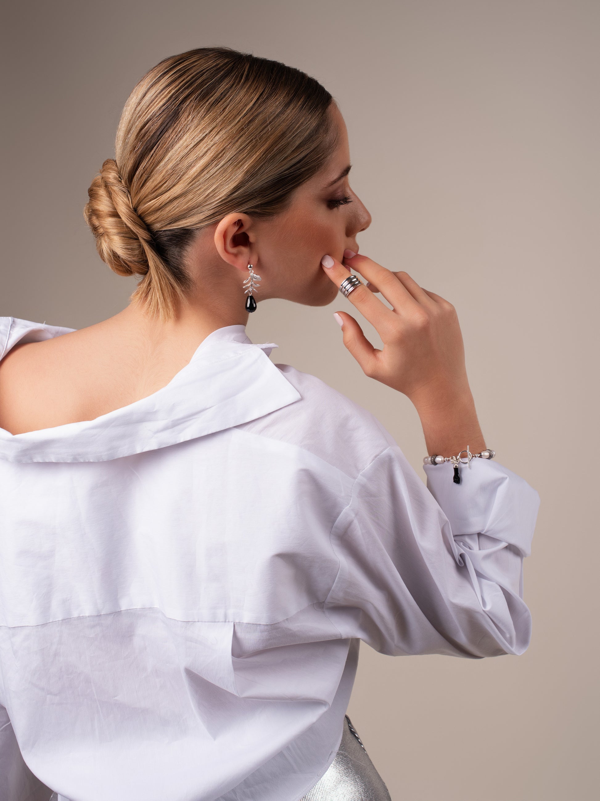 Estos pendientes Olea son hechos de plata 930 y tienen un hermoso diseño de hojas con drops de ónix. Con un estilo elegante y femenino, estos pendientes son la pieza perfecta para cualquier conjunto. La plata de alta calidad asegura durabilidad y resistencia.